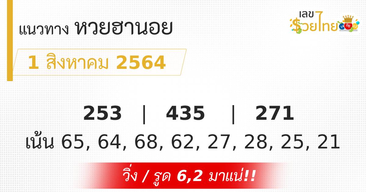 เลขเด็ด แนวทางหวยฮานอย ประจำวันที่ 1 สิงหาคม 2564
