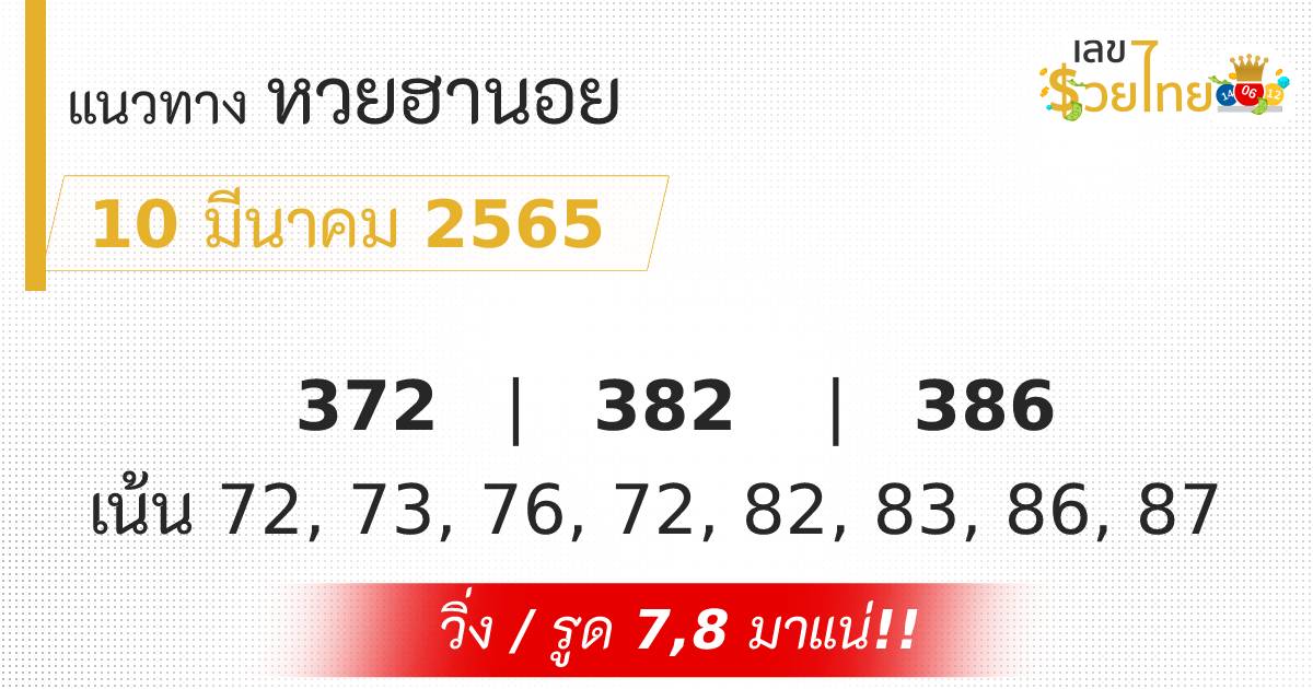 เลขเด็ด แนวทางหวยฮานอย ประจำวันที่ 10 มีนาคม 2565