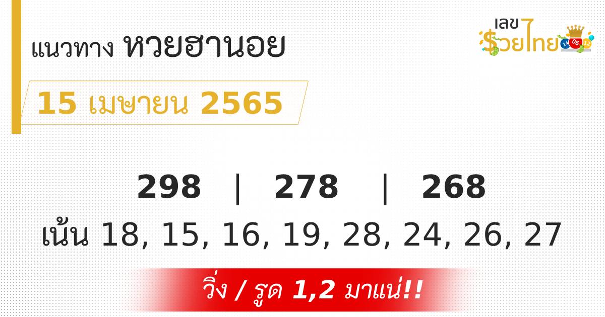 เลขเด็ด แนวทางหวยฮานอย ประจำวันที่ 15 เมษายน 2565
