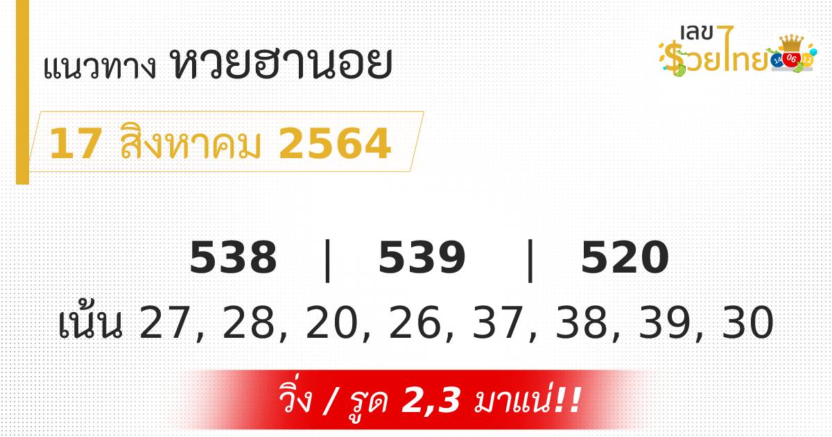 เลขเด็ด หวยฮานอย ประจำวันที่ 17 สิงหาคม 2564