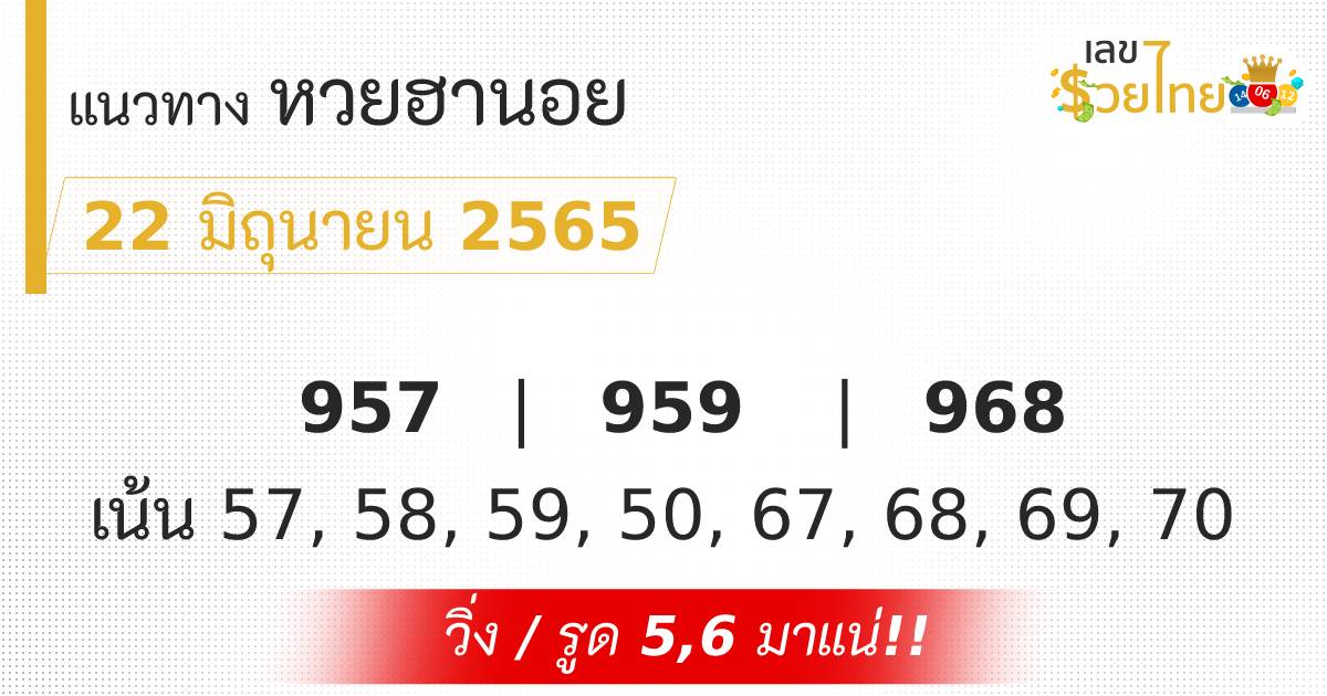 เลขเด็ด แนวทางหวยฮานอย ประจำวันที่ 22 มิถุนายน 2565