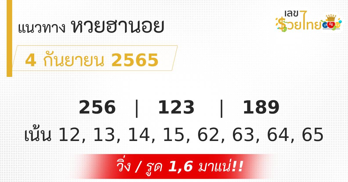 เลขเด็ด แนวทางหวยฮานอย ประจำวันที่ 4 กันยายน 2565