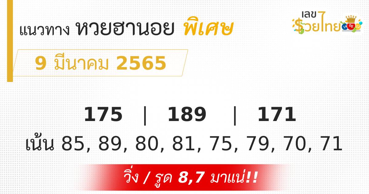 เลขเด็ด แนวทางหวยฮานอย พิเศษ ประจำวันที่ 9 มีนาคม 2565
