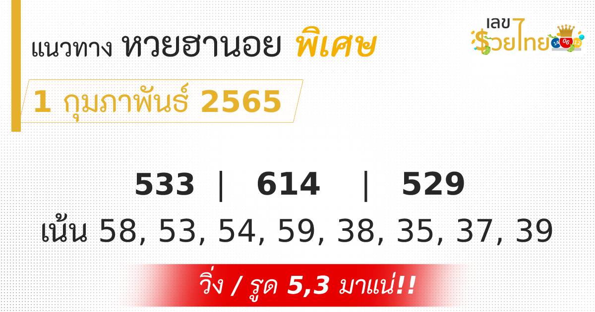 เลขเด็ด หวยฮานอย พิเศษ 1 กุมภาพันธ์ 65
