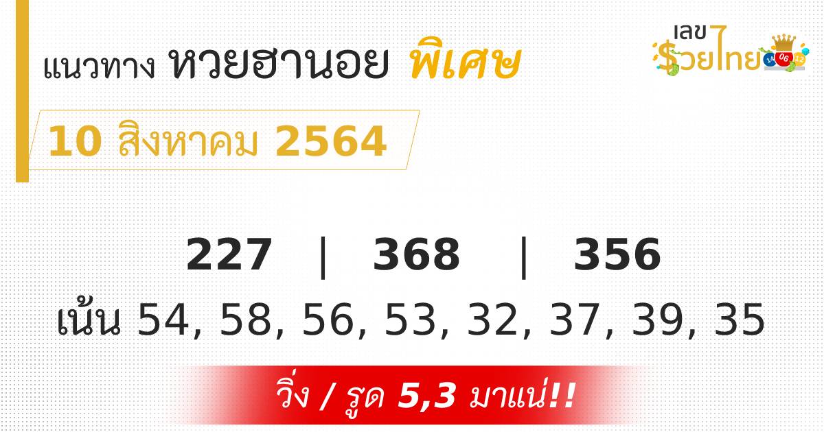 เลขเด็ด หวยฮานอย พิเศษ 10/8/64