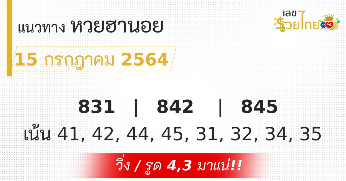 เลขเด็ด หวยฮานอย ประจำวันที่ 15 กรกฎาคม 2564