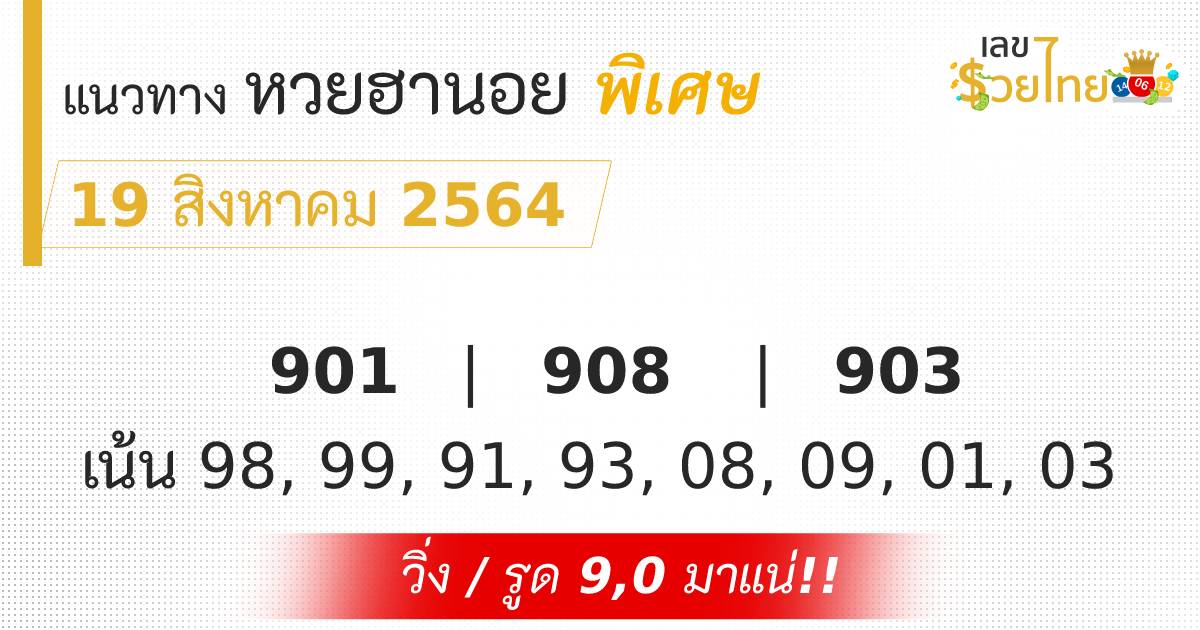 เลขเด็ด หวยฮานอย พิเศษ 19/8/64