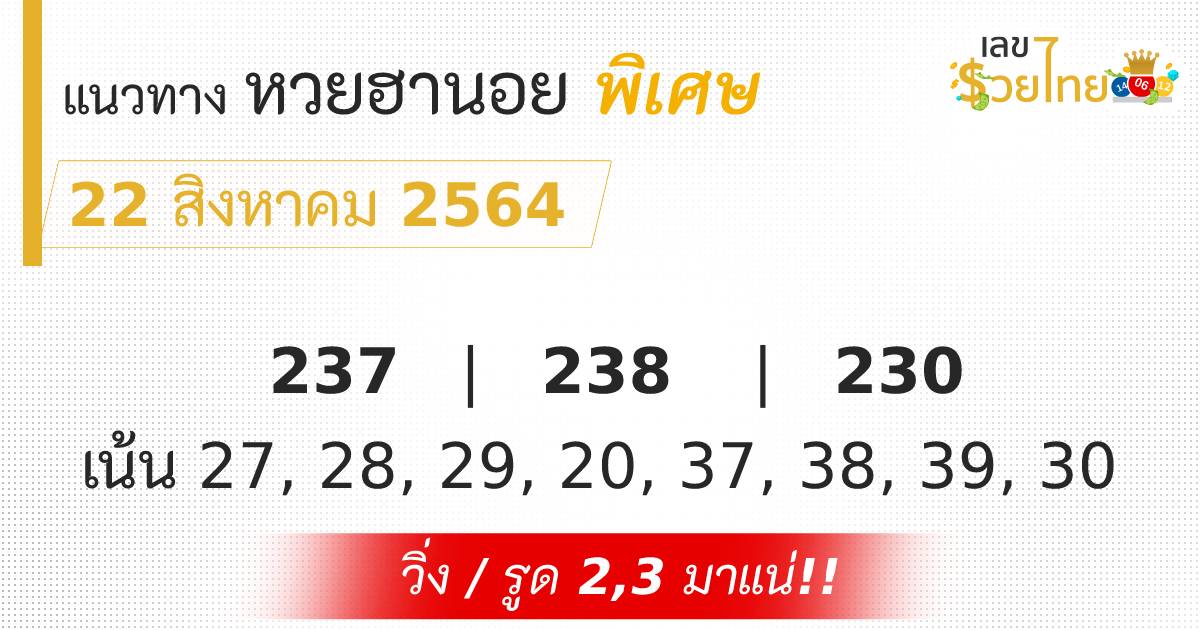 เลขเด็ด หวยฮานอย พิเศษ 22/8/64