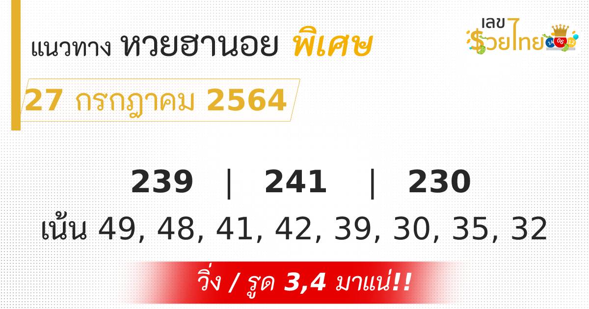 เลขเด็ด หวยฮานอย พิเศษ 27/7/64