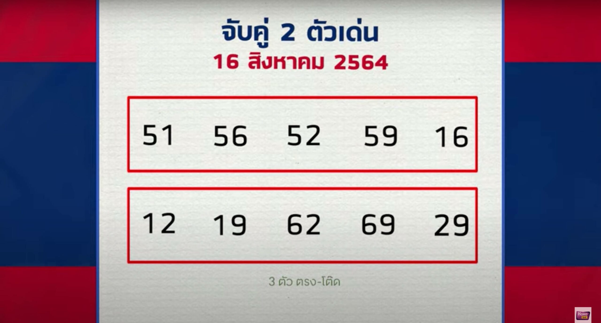 เลขเด่นหวยลาว 2 ตัวบน-ล่าง ที่ขายดี ได้แก่ 51 56 52 59 16 12 19 62 69 29