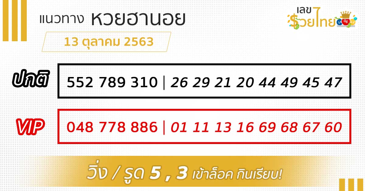 - ผลหวยฮานอย ปกติ | หวยฮานอย VIP 13/10/63