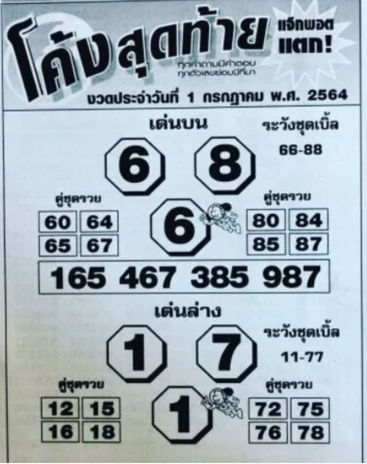 สรุป 5 อันดับเลขเด็ด เลขมาแรง งวดนี้ 1 กรกฎาคม ใครที่ยังกังวลหรือคิดไม่ตกว่าวันนี้ควรจะเสี่ยงโชคด้วยเลขอะไรดี เลขรวยไทย จัดให้ในวันนี้ไม่ต้องคิดหรือวิตกกันให้ยาก เป็นหน้าที่ของเราที่จะนำเลขเด็ด เลขดังมาอัพเดทและส่งต่อให้กับคอหวยเลขเด็ดงวดนี้ทุกท่าน เพื่อที่ได้ไม่พลาดในวันที่ 1 กรกฎาคม 2564 นี้