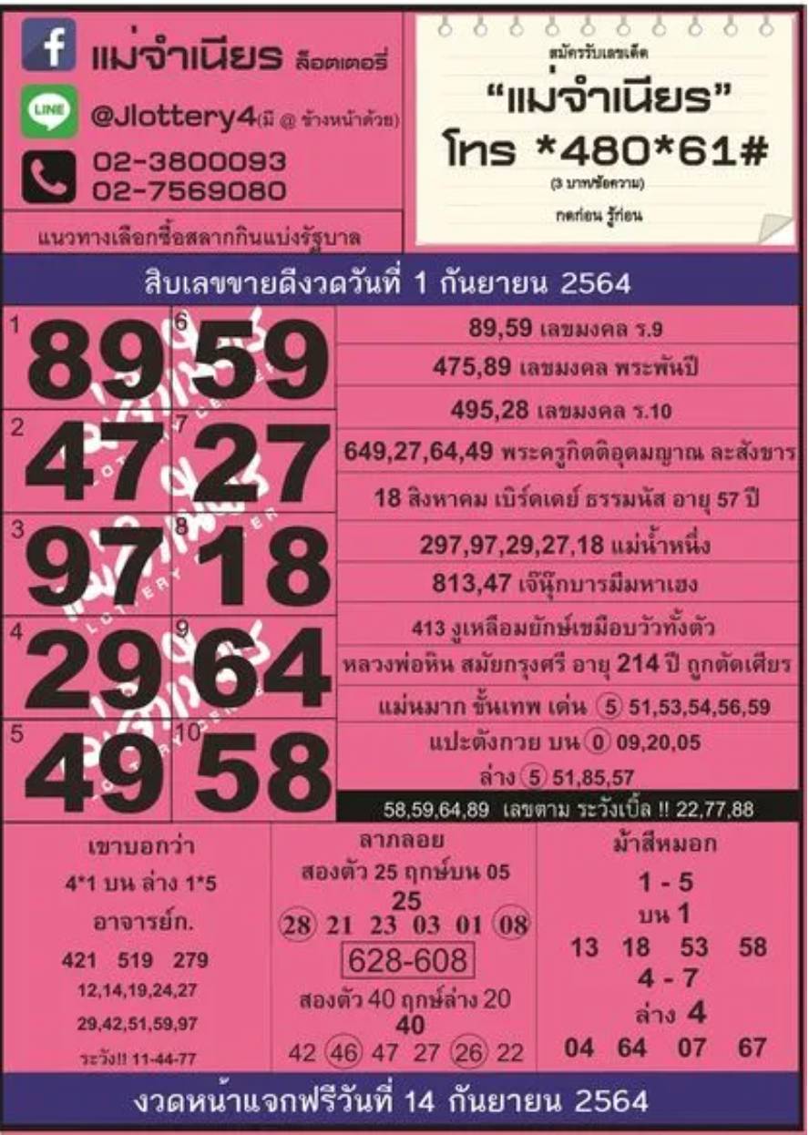 เลขเด็ด เลขดังจากสำนักใบ้หวยชื่อดัง หวยรัฐบาลวันที่ 1 กันยายน 2564