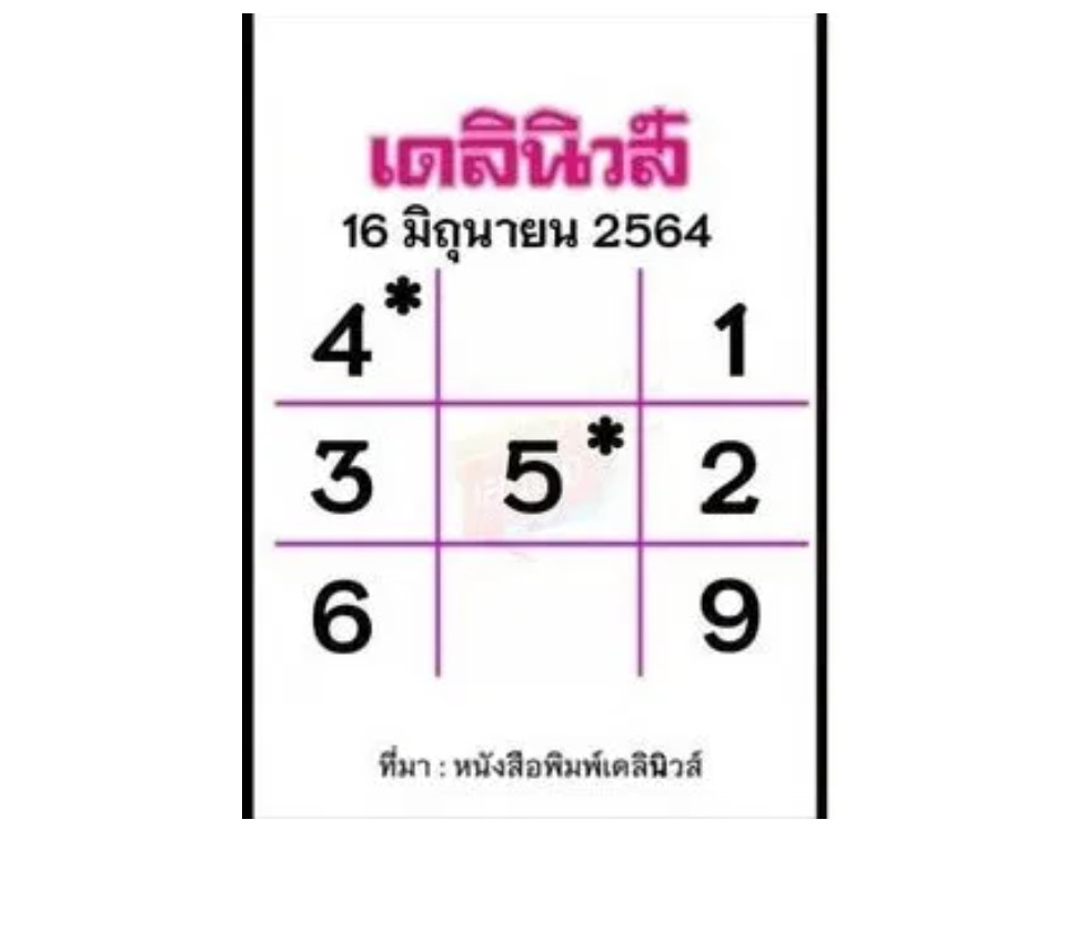 - เลขเด็ด ได้แก่ เน้น *4 – *5 / รอง 1 – 3 – 2 – 6 – 9