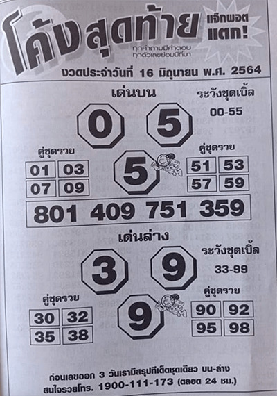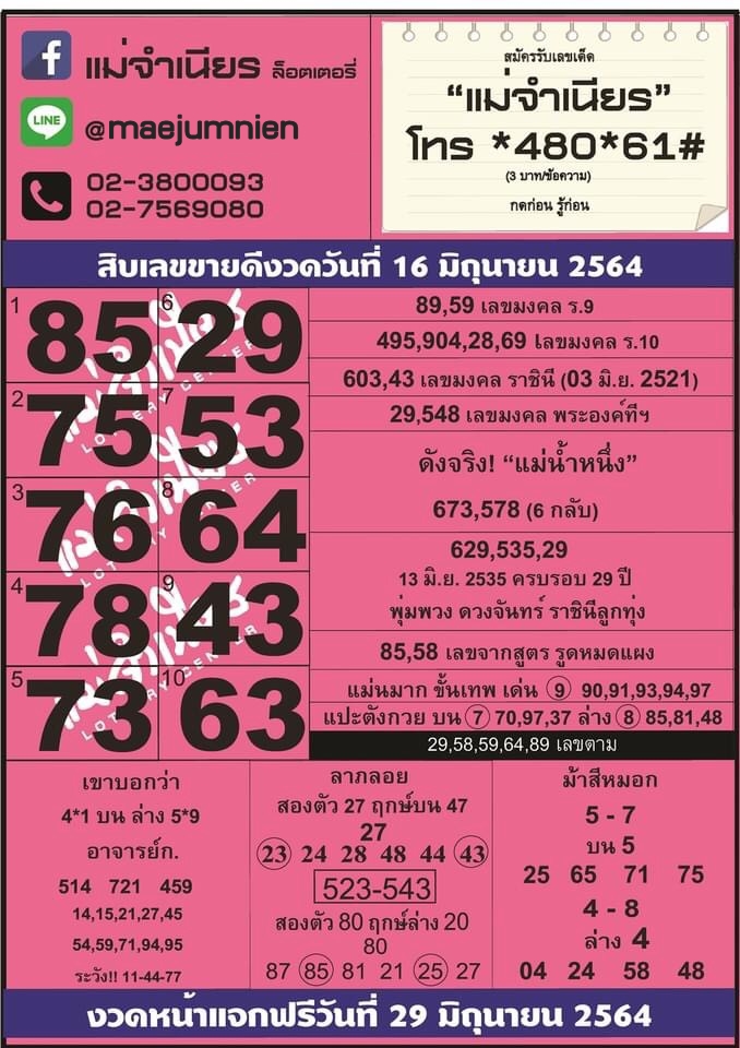 เลขเด็ด เลขดังจากสำนักใบ้หวยชื่อดัง หวยรัฐบาลวันที่ 16 มิถุนายน 2564