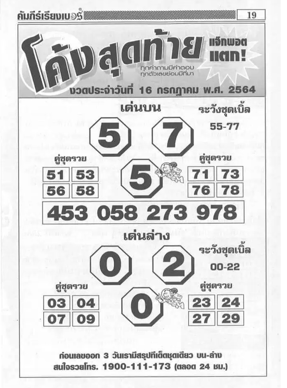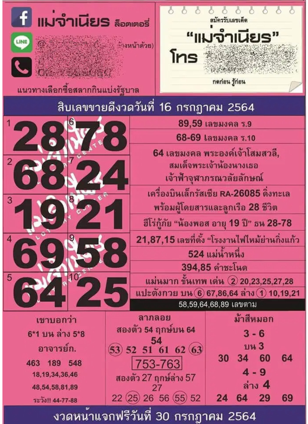 เลขเด็ด เลขดังจากสำนักใบ้หวยชื่อดัง หวยรัฐบาลวันที่ 16 กรกฎาคม 2564