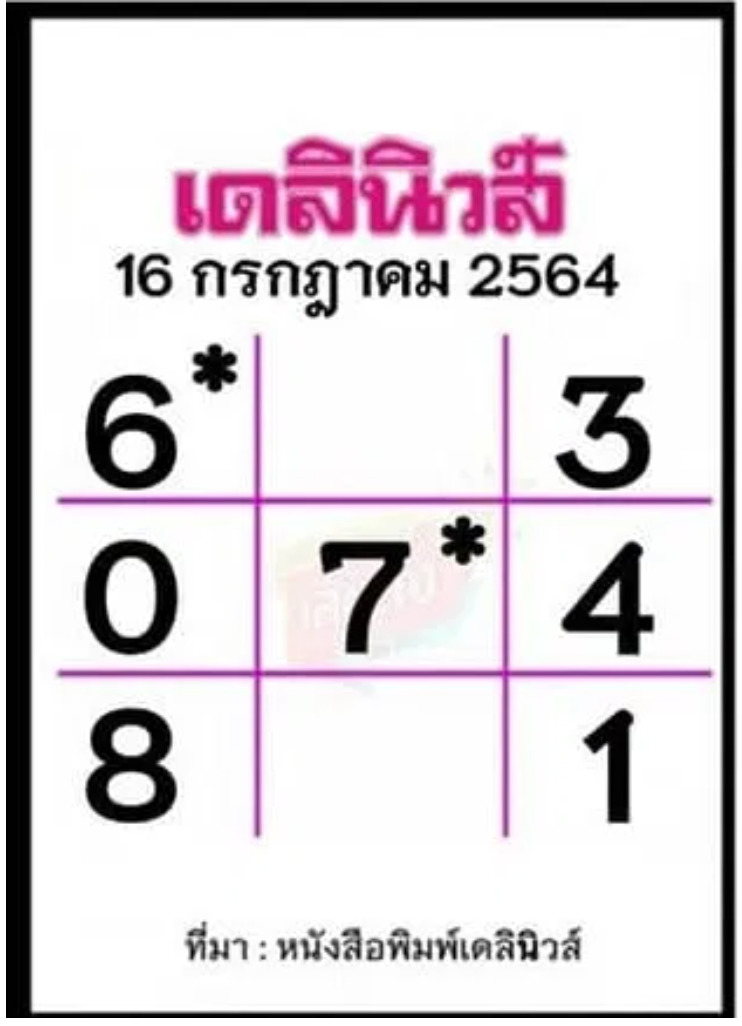 เน้น *6 – *7 / รอง 3 – 0 – 4 – 8 – 1 - ชุดเลขเด็ด 3 ตัวหวยเดลินิวส์ งวดนี้
