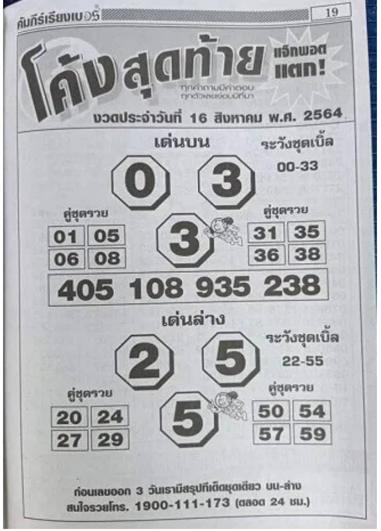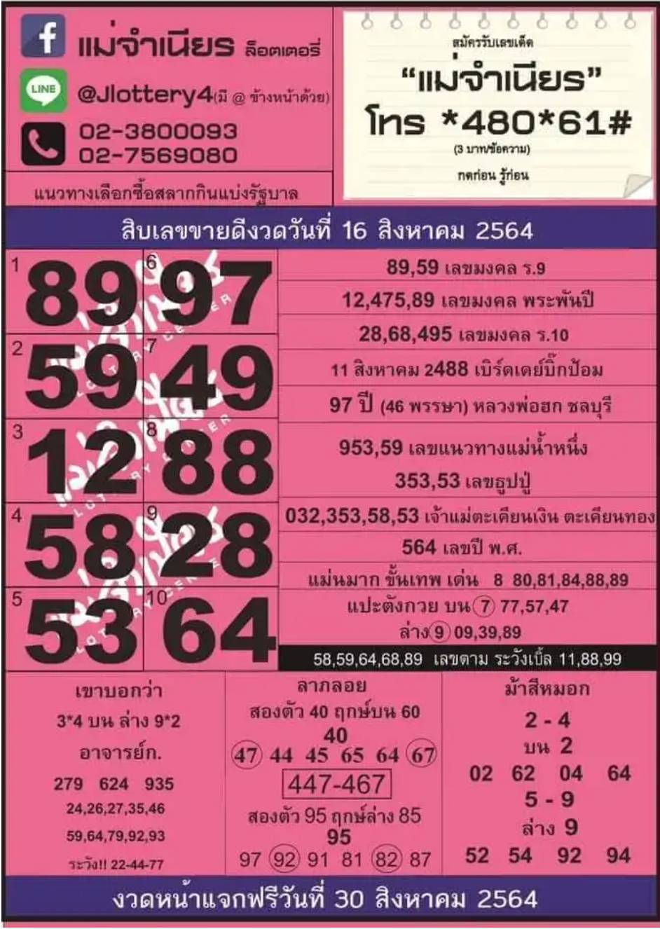 เลขเด็ด เลขดังจากสำนักใบ้หวยชื่อดัง หวยรัฐบาลวันที่ 16 สิงหาคม 2564