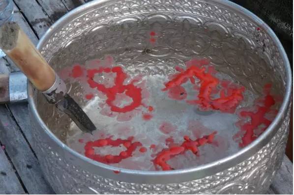 ในพิธีอาจารย์เริง ได้จุดธูปทำพิธี บอกกล่าว ปู่ขุนเดช ปู่ขุนจันทร์ ด้วยภาษาเขมร ขอให้บอกเลขเพื่อหยดลงในขันน้ำมนต์ ด้วยน้ำตาเทียนสีแดง ท่ามกลางคอหวยรอลุ้นอย่างใจจดใจจ่อว่างวดนี้ ปู่ขุนเดช ปู่ขุนจันทร์ จะให้เลขอะไร