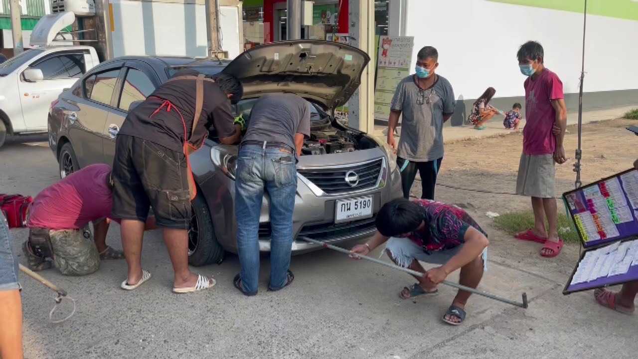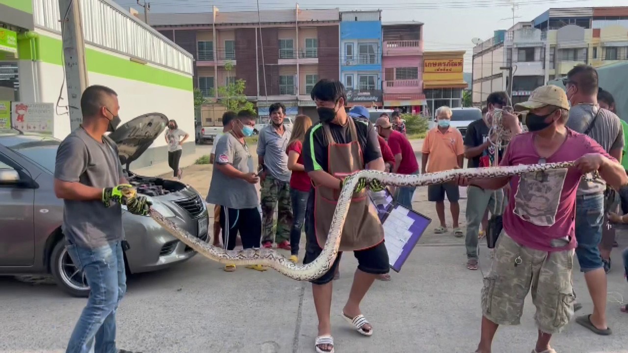 งูเหลือมเลื้อยเข้าใต้รถ คอหวยไม่พลาดส่องป้ายทะเบียน