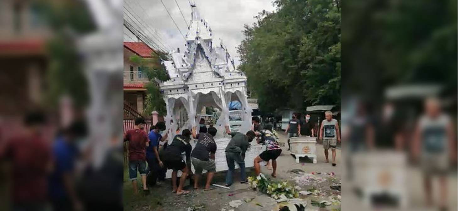 เมื่อวันที่ 26 ก.ย.64 ระหว่างที่ขบวนแห่ศพของผู้เสียชีวิตรายหนึ่ง อายุ 71 ปี จากวัดไปทำพิธีฌาปนกิจศพในสุสานบ้านน้อย หมู่ที่ 12 บ้านน้อย ตำบลสันกำแพง อำเภอสันกำแพง จังหวัดเชียงใหม่ ระหว่างที่ขบวนลากจูงศพที่อยู่ในโลงและประดับตกแต่งเป็นปราสาทกำลังเคลื่อนไปตามถนน เกิดไปเกี่ยวกับสายไฟทำให้โลงศพและปราสาทพลิกคว่ำกลางถนน และพวงหรีดกระจัดกระจายเต็มไปหมด