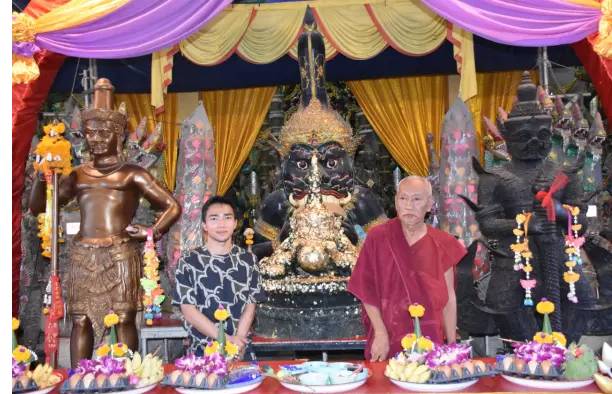 เมื่อมาถึงได้เข้ากราบไหว้นมัสการ หลวงพ่อแป๊ะ พร้อมกับนำกระเช้ามาถวายเนื่องในวันปีใหม่ จากนั้นหลวงพ่อแป๊ะได้แนะนำให้ไปกราบไหว้สิ่งศักดิ์สิทธิ์ ท้าวหิรัญพนาสูร 3 มหาเทพ คือ ท้าวเวสสุวรรณ, ท้าวหิรัญพนาสูรและองค์พระราหู ซึ่งทั้ง 3 เทพ ชาวบ้านเชื่อว่าช่วยเรื่องโชคลาภ ประสบผลสำเร็จด้านการงาน การเงิน ปกป้องคุ้มภัย ป้องกันภยันตรายได้ทุกชนิด เรื่องร้ายกลายเป็นดี จนเป็นที่กล่าวขานและให้โชคมาแล้วมากมาย