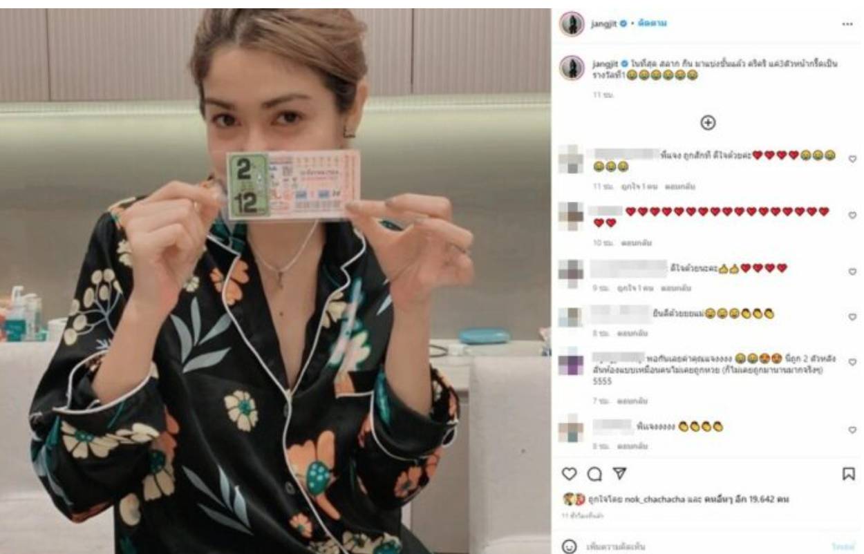 หลังผลสลากกินแบ่งรัฐบาลออกมา แจง ภรรยาแจ๊ส นักเสี่ยงโชคมือหนึ่งโพสต์กรี๊ดหนักโชว์สลากกินแบ่งรัฐบาลถูกรางวัลสักที พร้อมแคปชั่นสุดดีใจว่า ในที่สุด สลาก กิน มาแบ่งชั้นแล้ว คริคริ แค่3ตัวหน้ากรี๊ดเป็นรางวัลที่1