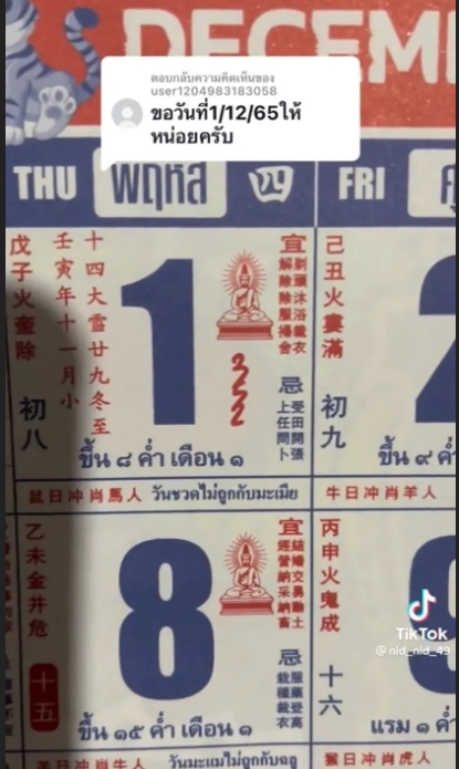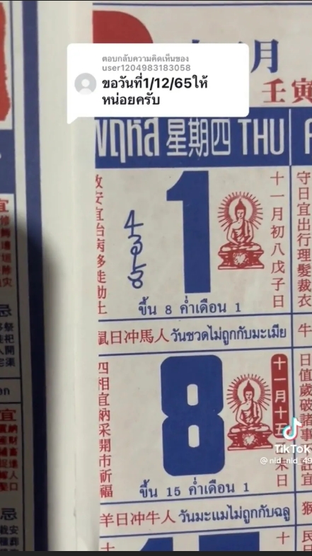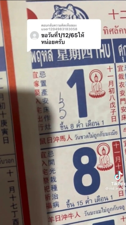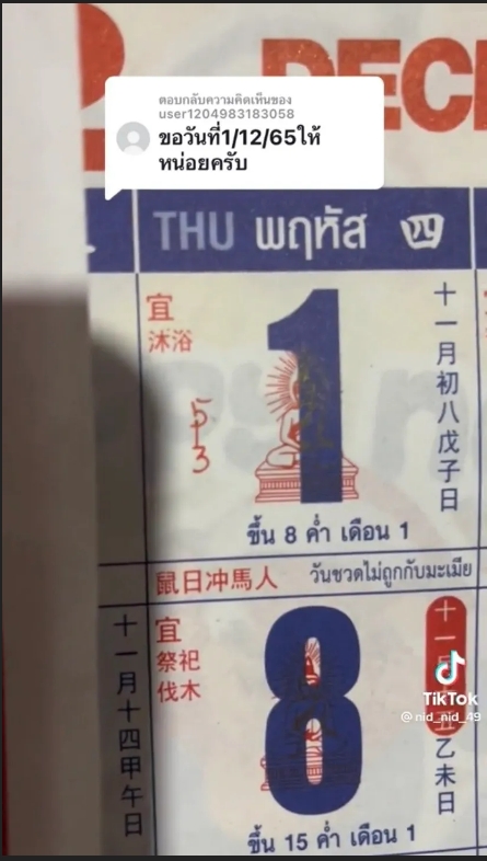 โดยในงวดวันที่ 1 ธันวาคม 2565 นี้ ผู้ใช้ TikTok บัญชี nid_nid_49 ก็ได้มาแบ่งปันแนวทางเลขเด็ดปฏิทินจีนจำนรวน 4 ฉบับให้ผู้ติดตามกันอย่างเช่นเคย หลังจากที่มีที่คอมเมนต์ขอในงวดถัดๆ ไปอย่างต่อเนื่อง สำหรับในงวด 1/12/65 แต่ละฉบับใครเห็นเป็นเลขใดก็กดดูรูปกันได้เลยจ้า