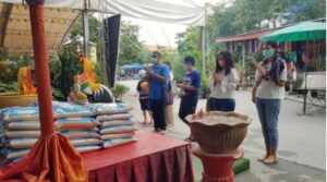 วันที่ 22 ต.ค. 2565 ที่วัดสว่างอารมณ์ แคแถว ต.ขุนแก้ว อ.นครชัยศรี จ.นครปฐม น.ส.เบญจมาศ ศรีวรรณสูตร อายุ 35 ปี ชาว กทม. ได้เดินทางพร้อมนำไข่ไก่สด จำนวน 3,000 ฟอง และข้าวสารถุงละ 5 กก. จำนวน 100 ถุง มาทำการแก้บนถวาย พระเงิน พระทอง หรือหลวงพ่อรวย พระพุทธรูปศักดิ์สิทธิ์ของวัดสว่างอารมณ์ โดยนำข้าวสารและไข่ไก่สดทั้งหมดตั้งวางเรียงรายที่บริเวณลานด้านหน้า องค์พระเงินพระทองจำลองที่ตั้งอยู่ด้านหน้าทางขึ้นศาลาการเปรียญ โดยได้นำดอกไม้ธูปเทียนและพวงมาลัยมาถวาย แล้วทำการจุดธูป 16 ดอก ถวายดอกไม้และเครื่องบูชา ก่อนอธิษฐานบอกกล่าวต่อพระเงินพระทองในการแก้บนครั้งนี้