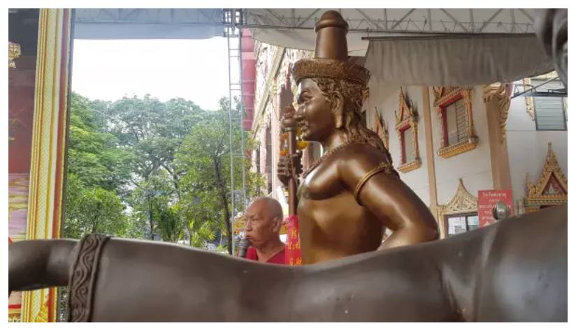 นายอิทธิ เล่าว่า เมื่อวันที่ 22 ตุลาคม ที่ผ่านมา วันนั้นได้เดินทางมากราบไหว้สิ่งศักดิ์สิทธิ์ภายในวัด และก็บังเอิญหรืออาจจะเป็นโชคของตนเองด้วย ที่ในวันนั้นหลวงพ่อแป๊ะ ได้ประกอบพิธีเบิกเนตร ท้าวหิรัญพนาสูรพอดี และกล่าวเชิญชวนสาธุชนที่มาวัดเข้าร่วมประกอบพิธีเพื่อตั้งประดิษฐานที่ลานด้านหน้าทางขึ้นศาลาการเปรียญ ตนเองเลยเข้าร่วมประกอบพิธีไปด้วย