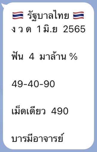 โดยในงวด 1 มิ.ย. 2565 นี้ แม่น้ำหนึ่ง ก็ให้แนวทางทั้งเลขฟัน เลข 2 ตัว และเลข 3 ตัว บารมีอาจารย์ โดยเลขฟันในงวดนี้ของแม่น้ำหนึ่ง เจาะไปที่เลข 4 ซึ่งเจ้าตัวมั่นใจว่าเลขนี้มาล้านเปอร์เซ็น ขณะที่เลข 2 ตัว ได้แก่ 49-40-90 และเลข 3 ตัวเม็ดเดียว ให้แนวทางมาที่เลข 490