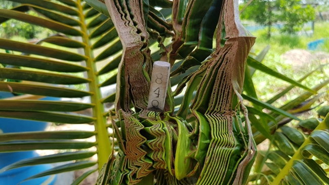 จึงเดินทางไปตรวจสอบ พบว่า ที่บริเวณพื้นที่นา ซึ่งเจ้าของคือนางดารุณี ปรับปรุงทำสระน้ำ ปลูกกล้วยและพืชอีกหลายชนิดเป็นเกษตรผสมผสานและต้นมะพร้าวอีก 80 ต้น ซึ่งเป็นต้นมะพร้าวน้ำหอมสายพันธุ์บ้านแพ้ว