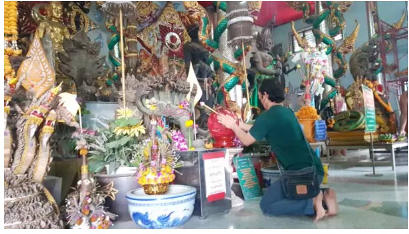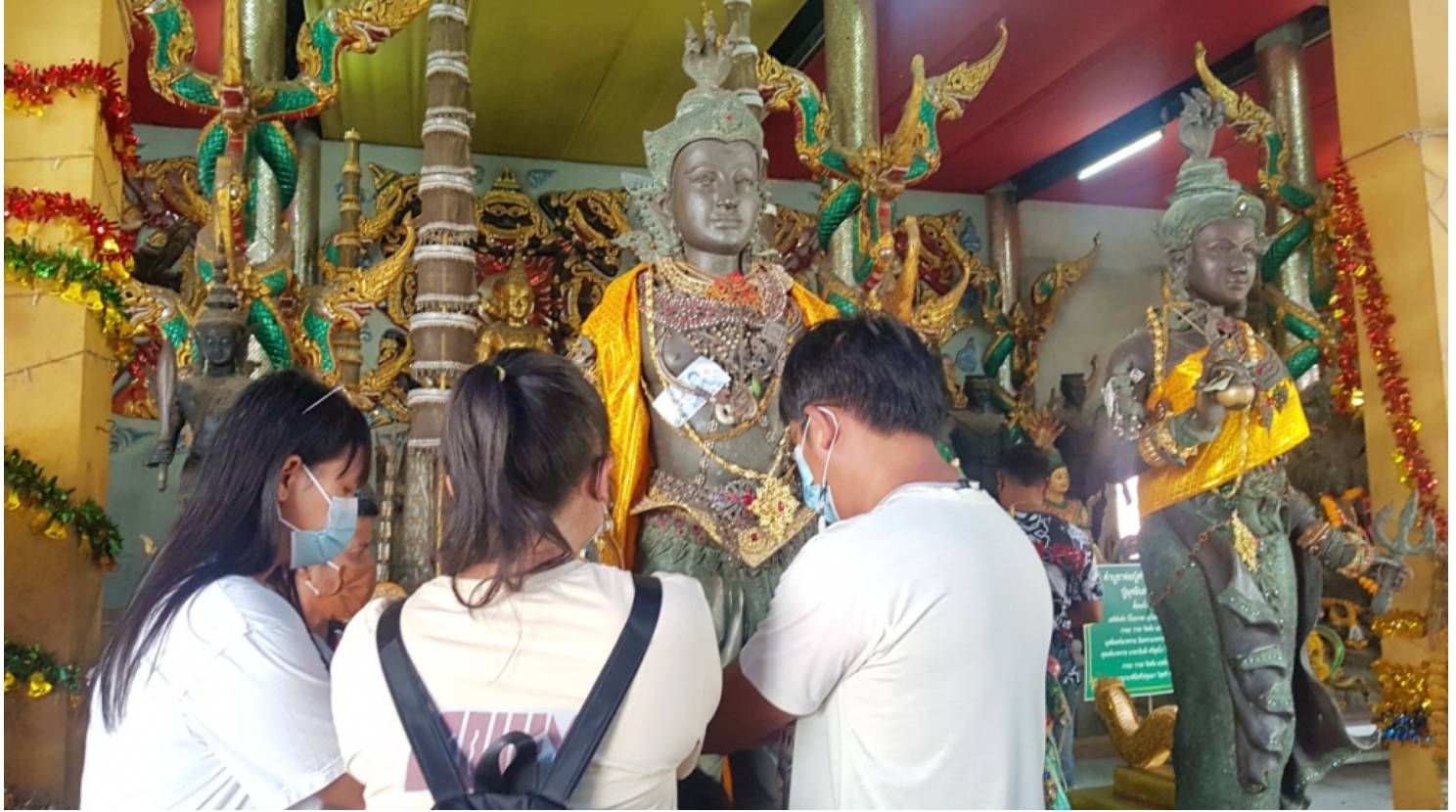 ทางด้าน นางวาสนา มณีพงษ์สุข อายุ 42 ปี อาชีพแม่ค้า เผยว่า วันนี้ได้เดินทางมากราบไหว้ขอพร พ่อปู่ศรีสุทโธ แม่ย่าศรีปทุมมา โดยเตรียมเครื่องเซ่นไหว้มาด้วย เพราะก่อนที่จะเกิดโควิด-19 เคยมาขอโชคลาภและเรื่องค้าขาย โดยครั้งนั้นได้ล้วงไข่ในไหทองคำ ปรากฏว่าถูกลอตเตอรี่ 3 ตัวตรงๆ แต่ซื้อไว้เพียงแค่ 2 ใบ แล้วไม่ได้มาอีกเพราะมีโรคระบาด