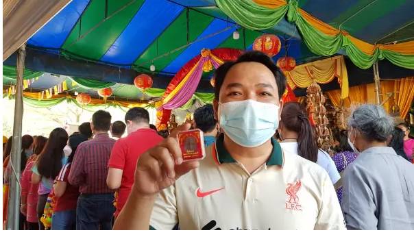 นายประชา สงวิชาญ อายุ 37 ปี อาชีพรับจ้าง เผยว่า เดินทางมารอเข้าพิธีตั้งแต่เช้า แต่ต้องรอมาเข้ารอบ 3 ช่วงบ่าย เพราะคนที่จะมาเข้าพิธีเยอะมาก เพราะทางวัดกลัวว่าจะแออัดมาก จึงรับรอบละ 200 คน และยังตรวจเข้มเพราะอยู่ในช่วงโควิด-19 ระบาด โดยวันนี้ถือเป็นวันดีที่มาเข้าพิธีเพราะถือว่าเป็นการเริ่มวันใหม่ของปี