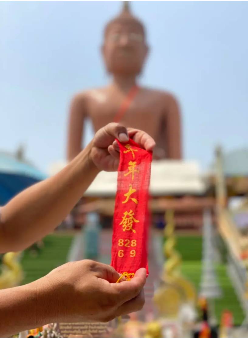 อย่างไรก็ตาม ก่อนที่จะเดินทางกลับนั้น ยังได้จุดธูปบอกกล่าวขอโชค โดยนำประทัดที่มาถวาย 1 หมื่นนัด จุดบอกกล่าว แล้วนำเอาหางประทัดเพื่อไปเสี่ยงโชค พร้อมกับโชว์ให้ดูได้หมายเลข 828 กับ 69 หากได้โชคอีกจะนำหัวหมูมาแก้บน 200 หัว ก่อนที่จะเดินไปหาซื้อลอตเตอรี่ตามแผงในวัดแล้วกลับบ้าน