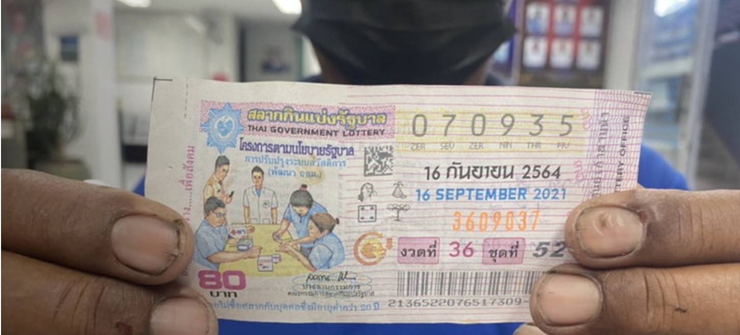 จังหวะที่จะโชคดีก็เข้ามาพอดี เมื่อคนขายลอตเตอรี่มาขายให้ถึงที่บ้าน ตนจึงเลือกซื้อแค่เลข ท้าย 35 เพียงหนึ่งใบ ตอนแรกกะว่าขอแค่ถูกรางวัลเลขท้ายสองตัวก็พอใจแล้ว แต่เมื่อผลสลากกินแบ่งรัฐบาลออก ตรงกับลอตเตอรี่ของตัวเองที่ซื้อ ปรากฏว่าถูกรางวัลที่ 1 ตนและครอบครัวดีใจมาก อันดับแรกถ้าได้เงิน 6 ล้านมา จะขอนำเงินส่วนหนึ่งมาใช้หนี้สิน และไถ่ที่นาที่ขายไปคืน และเงินที่เหลือจะเก็บไว้เป็นทุนของครอบครัวต่อไป