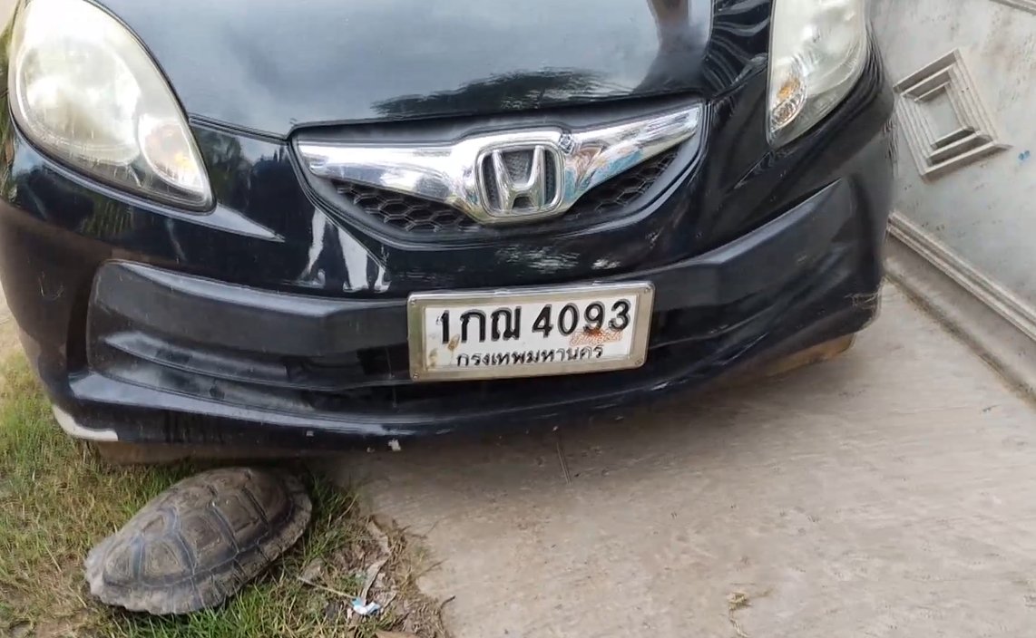 น.ส.เฌอปาน พรมพิลา เจ้าของรถเก๋ง HONDA สีดำ ทะเบียน 1 กฌ 4093 กรุงเทพมหานคร เล่าว่า ตนเองได้จอดรถไว้หน้าบ้าน ได้ยินเสียงเพื่อนที่ผ่านไปมา ถามว่าตนเองเอาเต่ามารองล้อรถหรือ? ซึ่งก็ทำให้ตนรู้สึกงง จึงได้เดินออกมาดู ปรากฏว่าเป็นเต่าตัวใหญ่ มุดอยู่ได้ท้องรถ และไม่ยอมไปไหน จึงได้บอกกับญาติ พี่น้อง ให้มาช่วยกันนำเต่ายักษ์ตัวดังกล่าวนั้นออกมาจากท้องรถ โดยตนคิดว่า เต่าตัวนี้คงจะคลานมาจากที่ห้วยหนอง ที่ไหนชักแห่ง