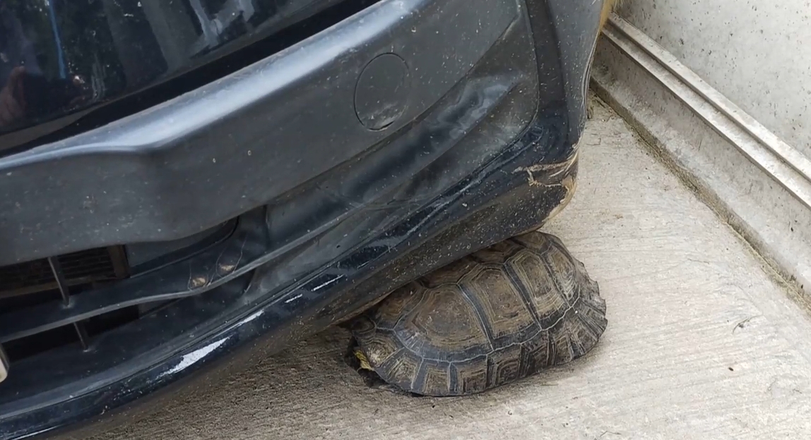 คอหวยแห่ลุ้นเลขเด็ด 1/10/64  “เต่าให้โชค”  มุดอยู่ใต้ท้องรถเก๋ง