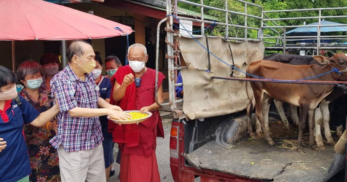 ที่วัดสว่างอารมณ์ แคแถว ต.ขุนแก้ว อ.นครชัยศรี จ.นครปฐม นายคชณัช เพ็ชร์ดี อายุ 72 ปี เจ้าของธุรกิจส่วนตัว เดินทางมาพร้อมครอบครัว เพื่อนำโค 5 ตัว เป็นเพศผู้ 3 ตัว เพศเมีย 2 ตัว ที่ไถ่ชีวิตมาจากโรงฆ่าสัตว์ใน จ.นครปฐม มาถวายวัดสว่างอารมณ์ เข้าโครงการถวายเป็นพระราชกุศลในหลวง ร.10 เพื่อนำไปแจกจ่ายให้กับเกษตรกรผู้ยากไร้ นำไปประกอบอาชีพ โดยมีพระครูยติธรรมนุยุต หรือ “หลวงพ่อแป๊ะ” เจ้าอาวาสเป็นผู้รับมอบ และประกอบพิธีให้