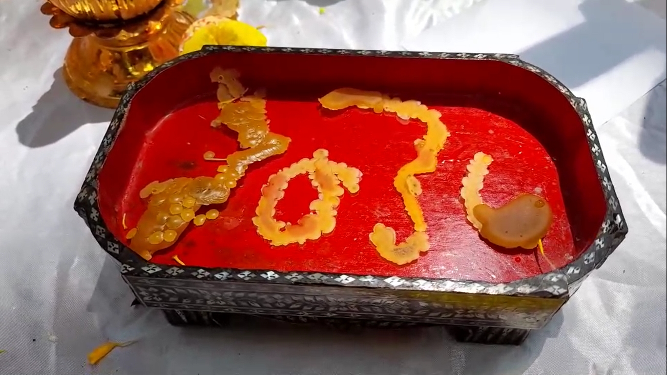 หลังจากจบพิธีบวงสรวงแก้บนเปิดทรัพย์รับโชคแล้ว ไฮไลท์เด็ดคือการส่องหาตัวเลขจากขันน้ำมนต์ บางคนก็มองเห็นน้ำตาเทียนเป็นเลข 7-0-3-6 ที่เห็นเป็นตัวเลขที่ชัดเจนคือการจุดธูปเสี่ยงไว้ที่กล้วย แต่ครั้งนี้คนที่มองเห็นไม่ชัดเจนเนื่องจากธูปหักในขณะทำพิธี หลายคนบอกว่าเห็นเป็น 253,352