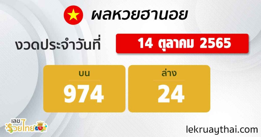 ตรวจหวยฮานอย 14/10/65 พร้อมกันทุกวัน 18.30 น. ที่ เลขรวยไทย