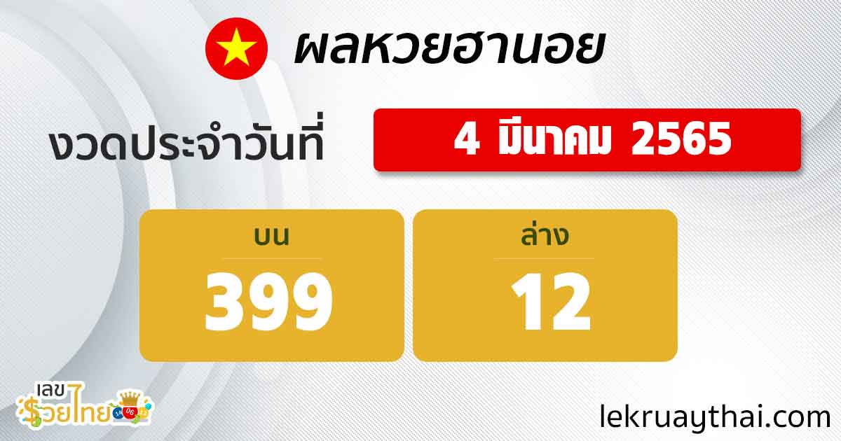 ตรวจหวยฮานอย 04/03/65 พร้อมกันทุกวัน 18.30 น. ที่ เลขรวยไทย