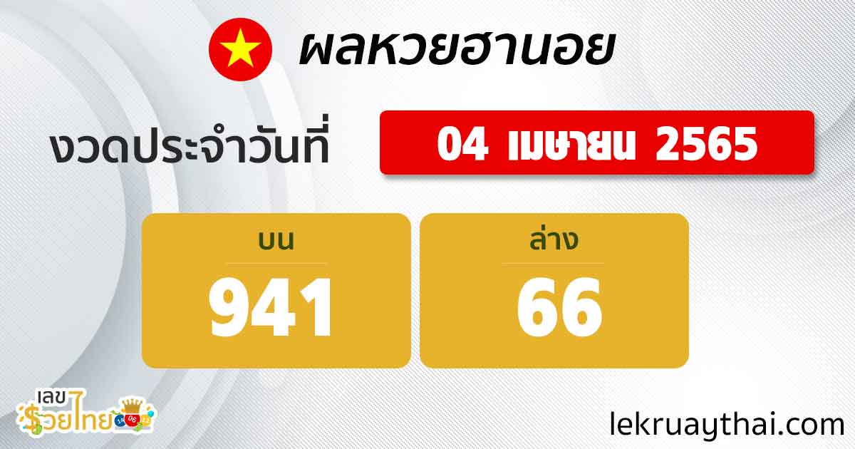 ตรวจหวยฮานอย 04/04/65 พร้อมกันทุกวัน 18.30 น. ที่ เลขรวยไทย