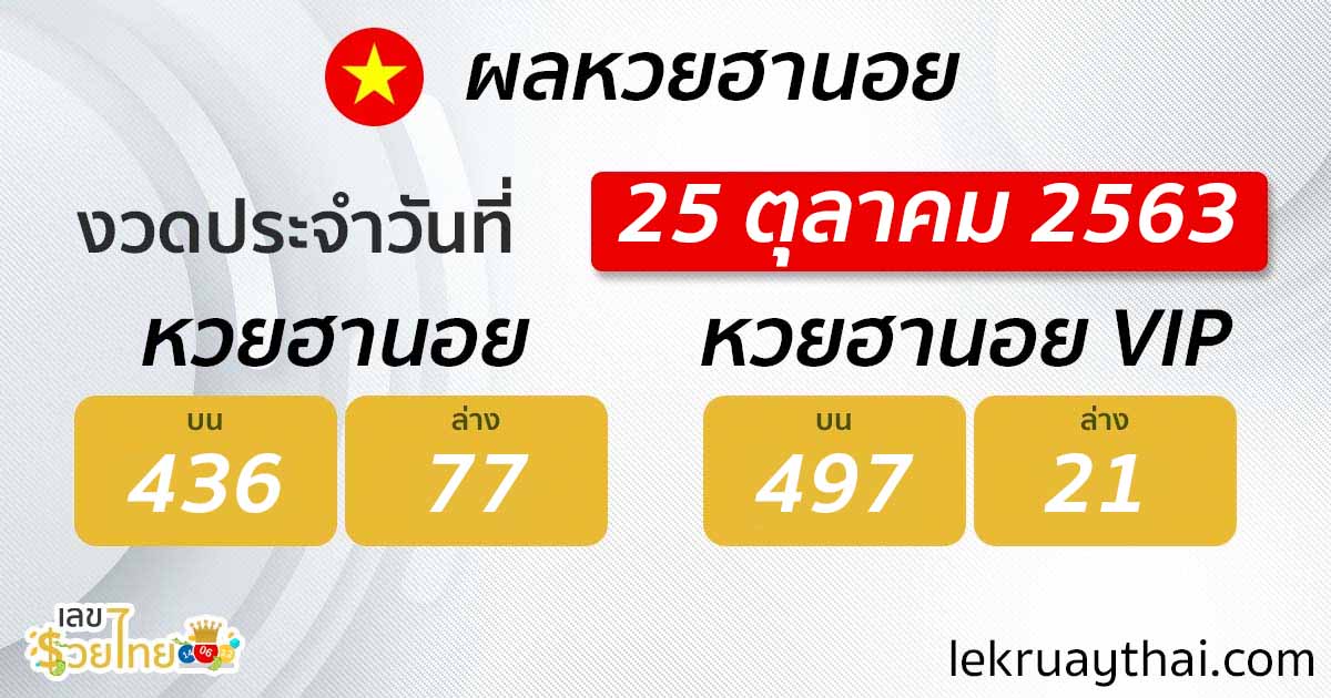 ตรวจหวยฮานอย 25/10/63 | ผลหวยฮานอย VIP ผลหวยฮานอยวันนี้