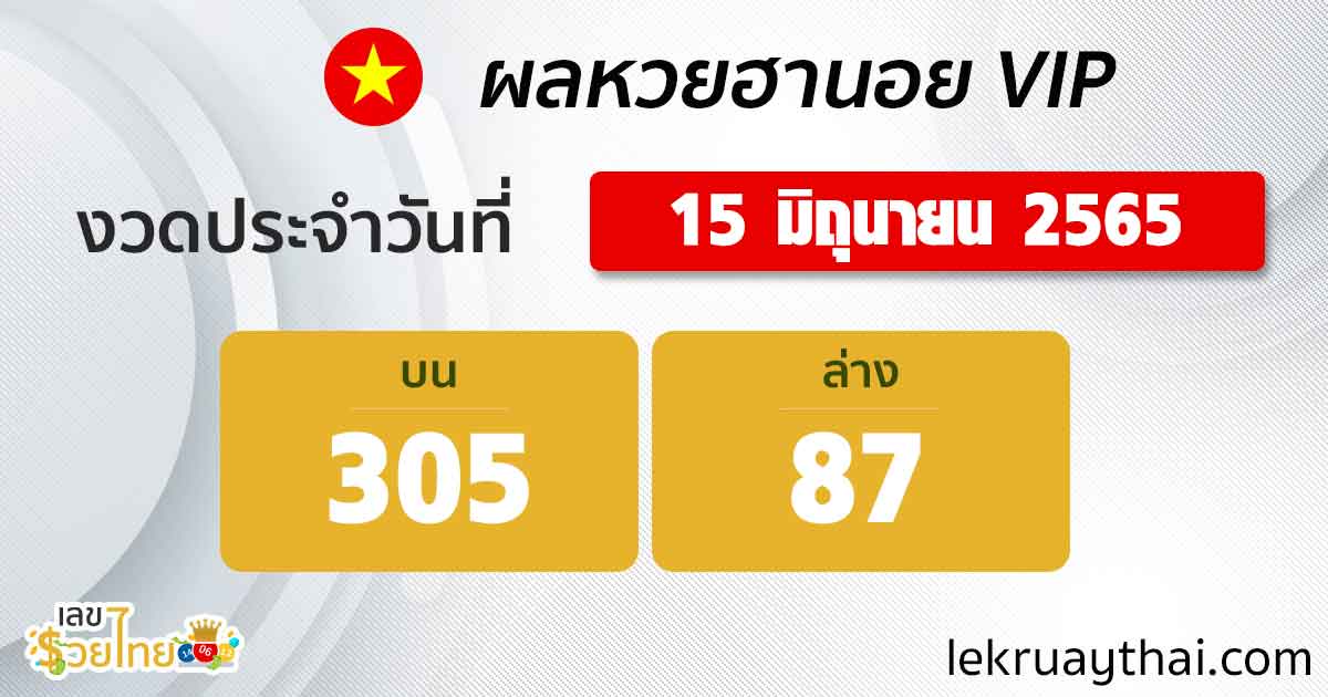 ตรวจหวยฮานอย VIP 15/06/65 เช็คผลหวยฮานอยกับเว็บไซต์ หวยออนไลน์ ของคนไทย เลขรวยไทย ตรวจหวยฮานอยวันนี้ ผลหวยฮานอยย้อนหลัง เช็คผลหวยฮานอยวันนี้ เว็บไซต์ของเราอัพเดตและรายงานผลรวดเร็วไม่จำเป็นต้องรอนานอีกต่อไป