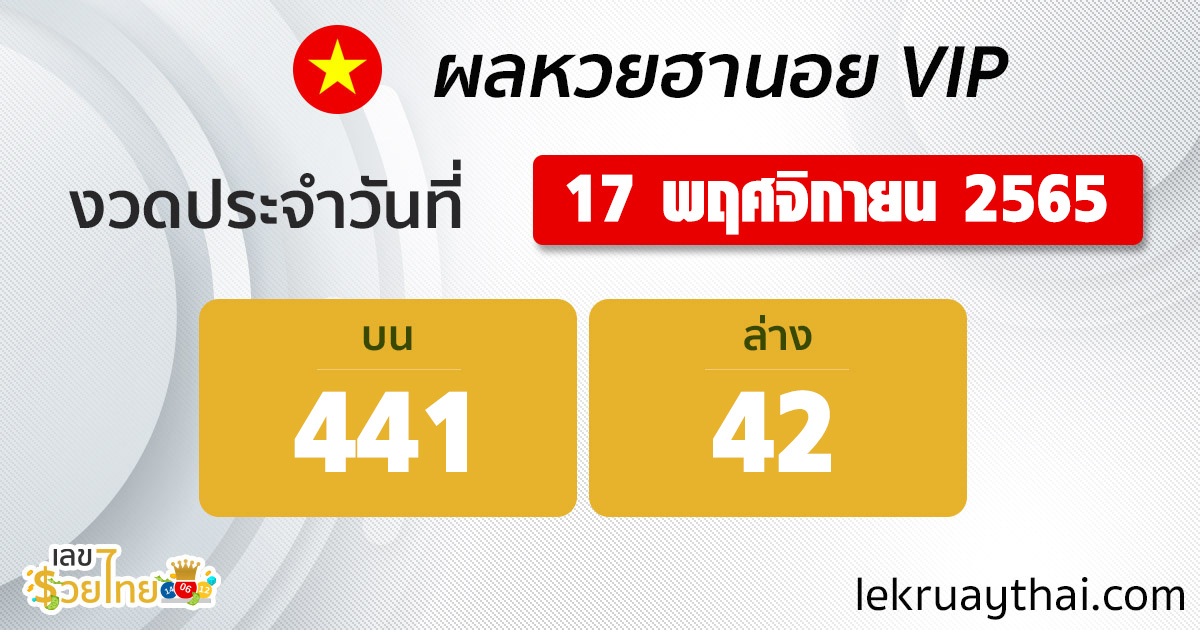 เลขรวยไทยตรวจหวยฮานอย VIP 17/11/65 พร้อมกันทุกวัน ที่ เลขรวยไทย