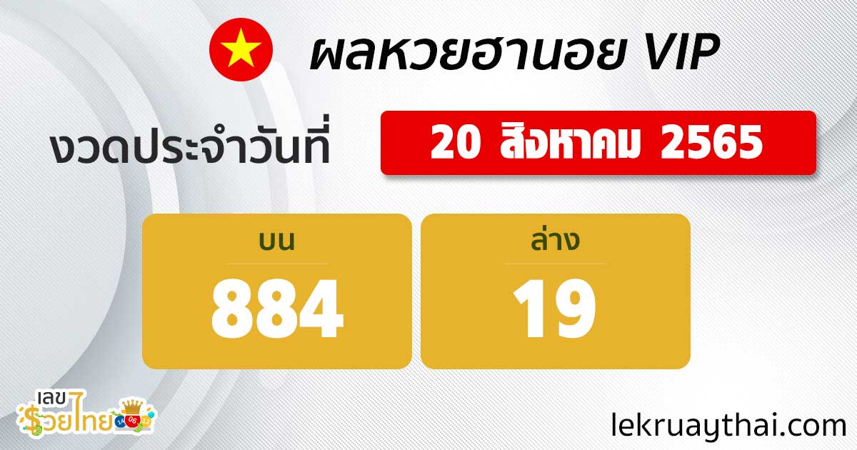 ตรวจหวยฮานอย VIP 20/08/65 เช็คผลหวยฮานอยกับเว็บไซต์ หวยออนไลน์ ของคนไทย เลขรวยไทย ตรวจหวยฮานอยวันนี้ ผลหวยฮานอยย้อนหลัง เช็คผลหวยฮานอยวันนี้ เว็บไซต์ของเราอัพเดตและรายงานผลรวดเร็วไม่จำเป็นต้องรอนานอีกต่อไป