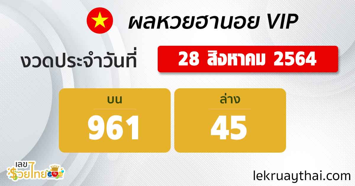 ตรวจหวยฮานอย VIP 28/08/64
