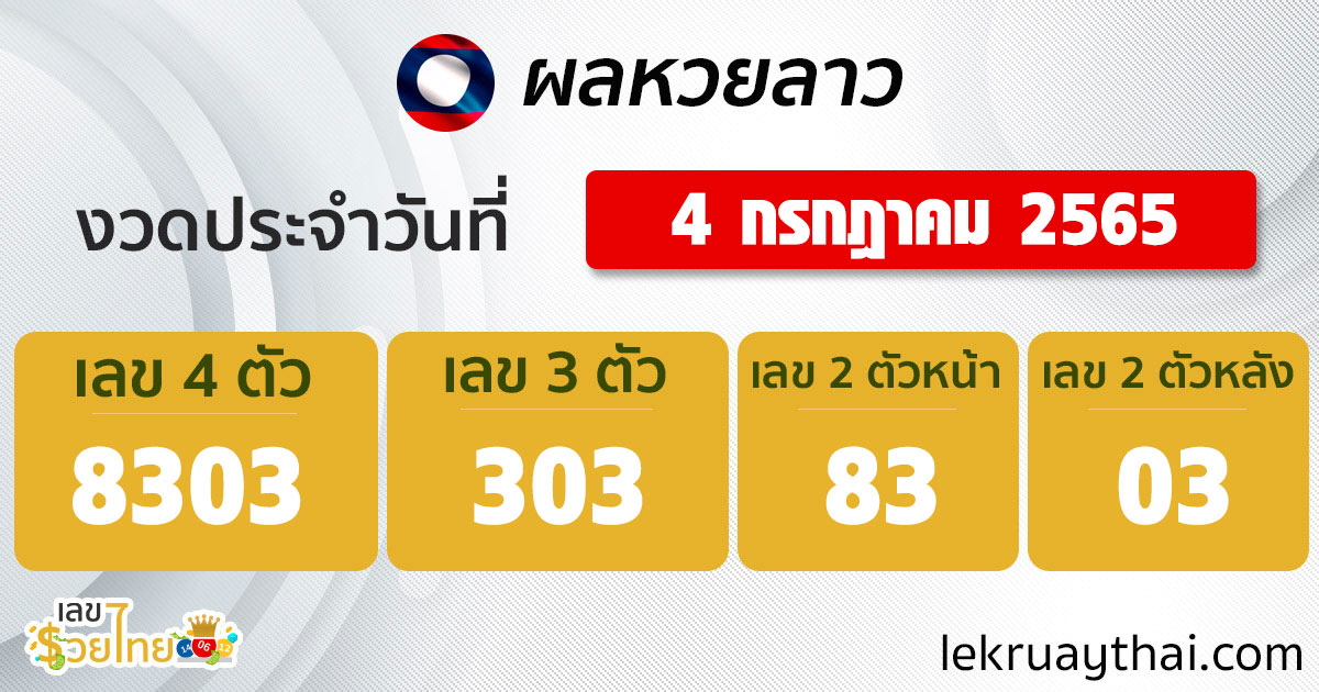ผลหวยลาว 04/07/65 ตรวจหวยลาววันนี้ ตรวจหวยลาวล่าสุด เลขรวยไทย