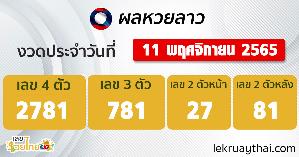 ผลหวยลาว 11/11/65 ตรวจหวยลาววันนี้ ตรวจหวยลาวล่าสุด เลขรวยไทย